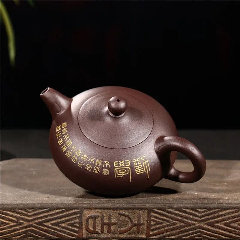 Dans la plus pure tradition artisanale chinoise, cette Théière en Argile se distingue par son absence de fioritures. Des lignes sobres et minimalistes… Une teinte brun chocolat… Des caractères chinois dorés… Il suffit de cela pour que cette Théière Chinoise en Argile laisse une impression marquante.